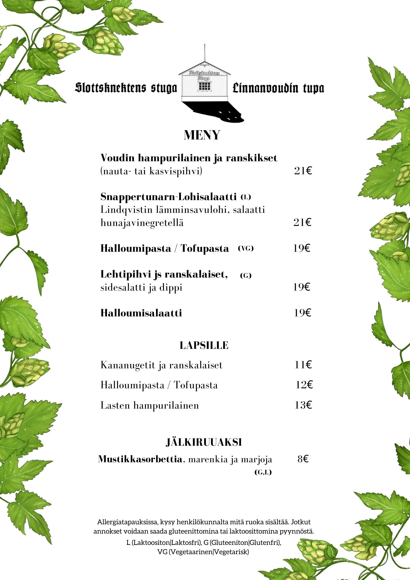 Ryhmävarauksia otetaan vastaan vuoden ympäri. Meillä käy myös ePassi,Edenred ja Smartum.